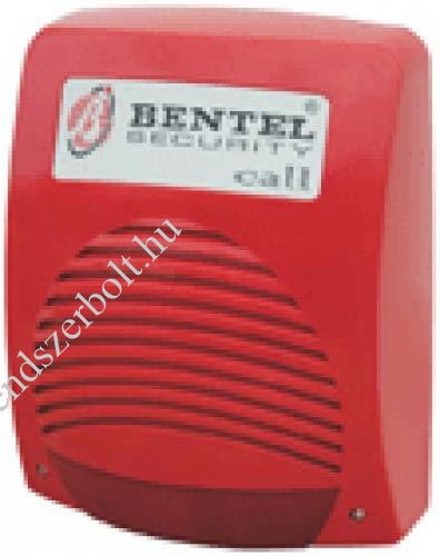 BENTEL kültéri, akkumulátoros hang-, fényjelző, mikroprocesszor vezérléssel, villogóval, polikarbonát házban, két hang- és fényindító bemenettel, 102dB modulált, beállítható szirénahang; hangszóró-teszt áramkörrel; szétszerelés, falról lefeszítés, vezeték elvágása és izzó megszakadása elleni védelem; beállítható leállási idő; akkutesztelő áramkör, mely alacsony akkufeszültségnél leállítja a villogót,tűz jelző rendszerekhez alkalmazható,piros kivitelű