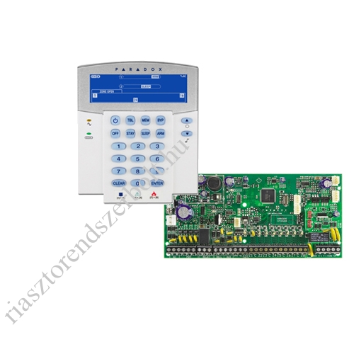 Paradox SP6000 riasztó központ 8 (32) zóna, 2 partíció, StayD, kommunikátor, 5 PGM, K35LCD FIX szöveges/ikonos kezelő. Nem támogatja a GSM távfelügyeleti és hanghívás funkciót PCS modullal!