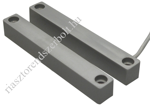Hosszú élettartamú, kiváló minőségű, felületre szerelhető nyitásérzékelő. A gyártás során felhasznált minőségi anyagok garantálják a biztonságos érzékelést. Javasolt felhasználási terület, fém nyílászárók, ipari rolókapuk és garázsajtók védelme. - Felületre szerelhető érzékelő és mágneses ellendarab. - Vezeték az érzékelő végén kivezetve. - Vezetékhossz: 45 cm. - Alaphelyzetben zárt, NC kontaktust adó Reed-relé. - Érzékelési távolság: 50mm. - Szürke, műanyag ház. - Kontaktus teljesítmény aránya: 10W/VA. - Maximális kapcsolási feszültség: 200VDC. - Maximális kapcsolási áramerősség: 0.5A. - Kontaktus ellenállása: min. 150 milli ohm. - Élettartam: 10000000 érzékelés. - Szigetelési ellenállás: 100 Mega ohm. - Ütési ellenállás: 30G 0.011 mp-re. - Rezgési ellenállás: 20G (10Hz - 1000Hz). - Érzékelő mérete: 99mm x 18.5mm x 18.5mm. - Mágnes mérete: 99mm x 18.5mm x 18.5mm.