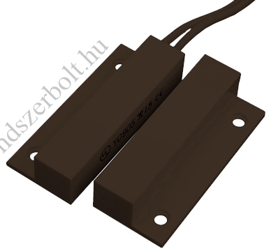 - Felületszerelhető. - Két csavarral és/vagy hátoldali tapadószalaggal rögzíthető. - Vezeték az érzékelő oldalán kivezetve. - NC kontaktust adó Reed-relé. - Fehér és barna színben. - Kontaktus terhelhetősége: 30 Vdc, 0,5 A. - Vezetékhossz: 50 cm. - Méret: 34mm x 14mm x 7mm. - Alkalmazható fa és kisebb nagyságú fémajtóknál.
