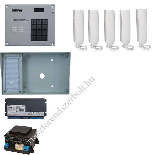 Katalógus | Digitális kaputelefon rendszerek társasházak részére | DIGITÁLIS társasházi kaputelefon rendszerek | LASKOMEX (RAINMANN)társasházi kaputelefon rendszer > Laskomex Rainmann kaputelefon normál alap szett 5 lakáskészülékkel