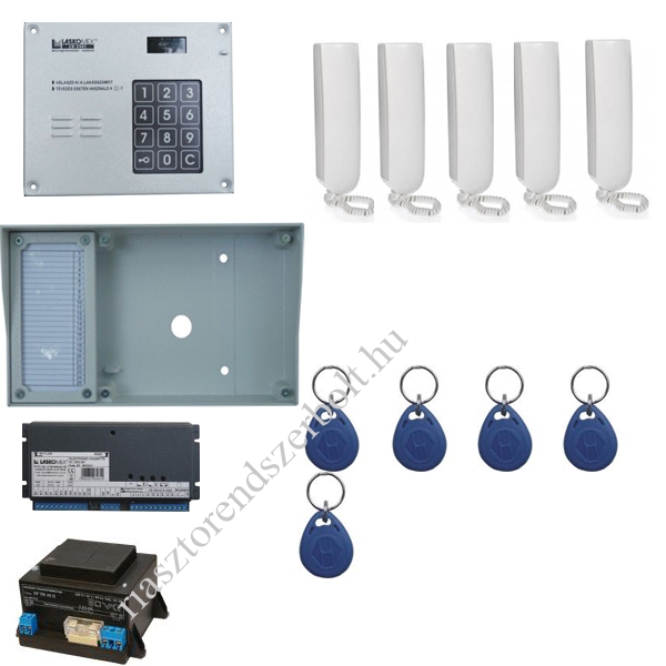 Katalógus | Digitális kaputelefon rendszerek társasházak részére | DIGITÁLIS társasházi kaputelefon rendszerek | LASKOMEX (RAINMANN)társasházi kaputelefon rendszer > Laskomex Rainmann kaputelefon PROXY alap szett 5 lakáskészülékkel