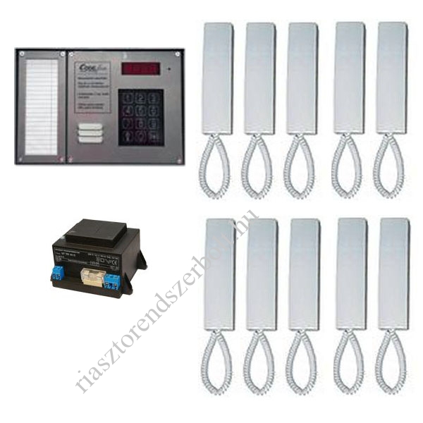 Katalógus | Digitális kaputelefon rendszerek társasházak részére | DIGITÁLIS társasházi kaputelefon rendszerek | Codefon társasházi kaputelefon rendszer > Codefon "10" kaputelefon szett 1 o. falonkívüli házzal, táp, 10db DIGITÁLIS lakáskészülék, bővíthető