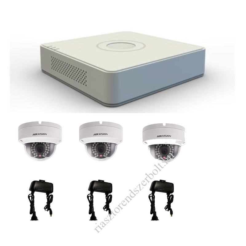 1db Hikvision 4 csatornás NVR, 3db 1,3MP-es Hikvision dome kamera 4mm-es fix optikával , 1db 12V/2Ah-s tápegység, HDD és kábelek nélkül, külön kell a csomaghoz rendelni. A szett összetevői módosíthatóak, bővíthetőek!