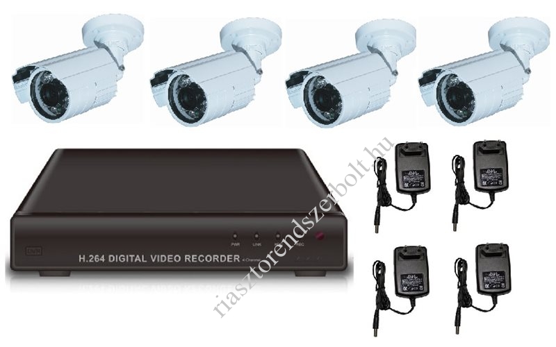 Kamerás megfigyelő rendszer szett (ACESEE AS-0470 DVR 4 csatornás rögzítő + 4db AVC20S70 700TVL kültéri bullet kamera, a HDD-t külön kell rendelni!