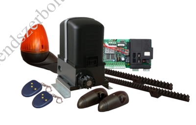 OLASZ - tolókapu kit, 1db ROLLER-5N tolókapu motor, 1db T011S/NOD vezérlés, beépített fixkódos rádióvevővel, 2db PTX433305AI-B 3 csatornás rádióadó, 1db TCLAMP-N villogó, 1pár TCFET-N fotocella, 2 csomag TC073 (4 m) műanyag fogasléc, végállás kapcsolók, összeszerelő kit, - Családi és társasházakhoz, 30% munka, kiskapu funkció, lassítás, akadályérzékelés, 500kg-os kapuhoz, 2 év garancia